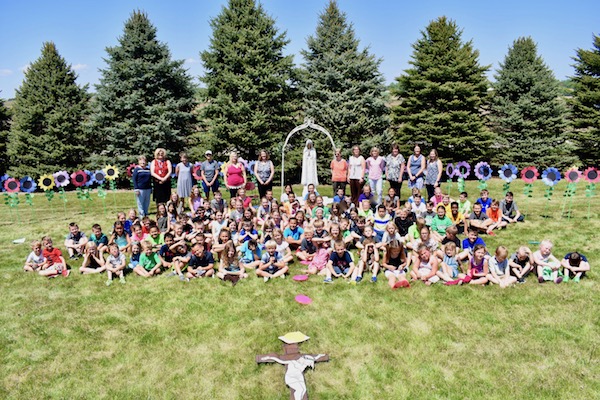 In a craft station students assembled giant flowers for the procession before the living rosary. The colorful blooms blowing in the breeze were the perfect decoration around the statue of the Blessed Mother.