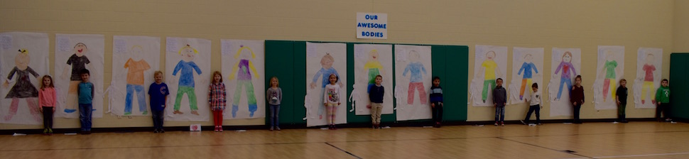 Kindergarten learned all about our wonderful body. They learned about the parts of our body and how they all work together. They learned about how we can keep our body healthy and loved making a skeleton. The had fun drawing a life size picture of their body. Using math skills, Kindergarten estimated how tall they are and then measured their actual height with a ruler. The class sang an exercise song and danced using rhythm sticks. Kindergarten is thankful to God for our wonderful bodies!