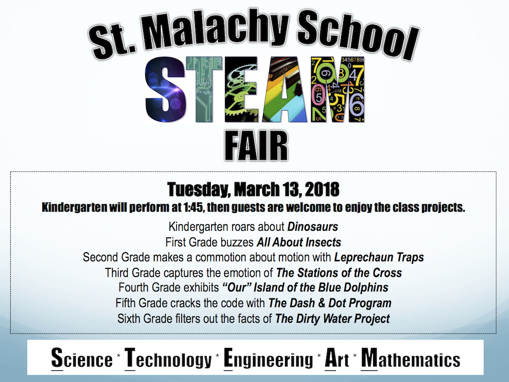 2017 St. Malachy STEAM Fair: Tuesday, 3.14 (Pi Day)