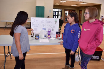 Third Grade was busy in the kitchen! Each student chose a math or science topic and then found a way to demonstrate the topic with food. Everyone designed a plate with key terms to help explain their subject and wore aprons of their own design with catchy slogans to add a little flair. Along with easy to digest information about their math or science topics, Third Grade also handed out samples of the food they prepared!